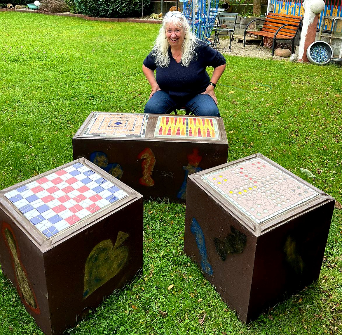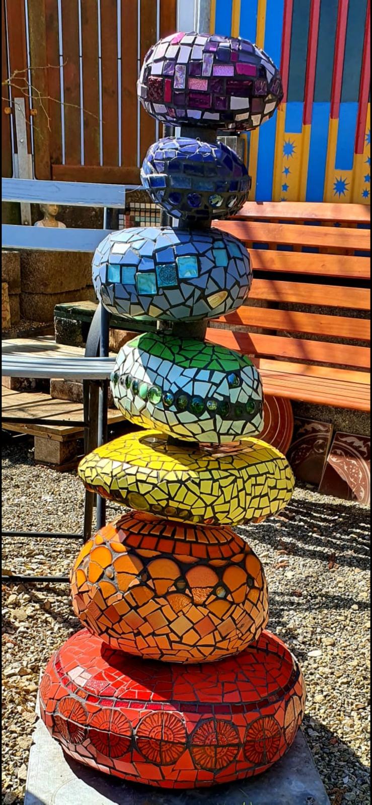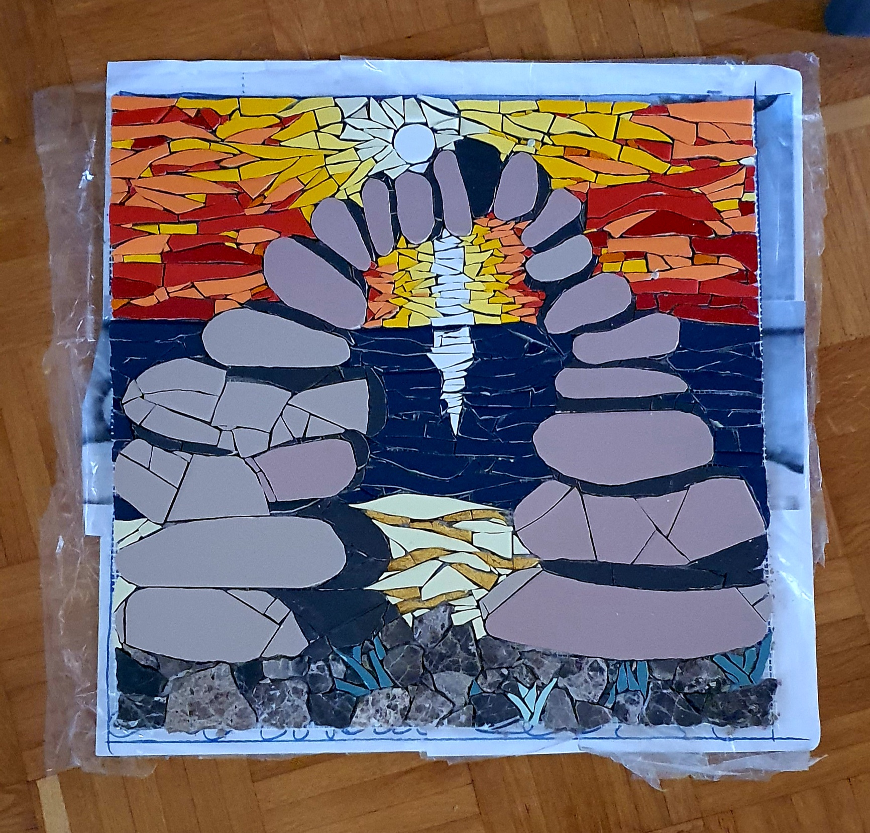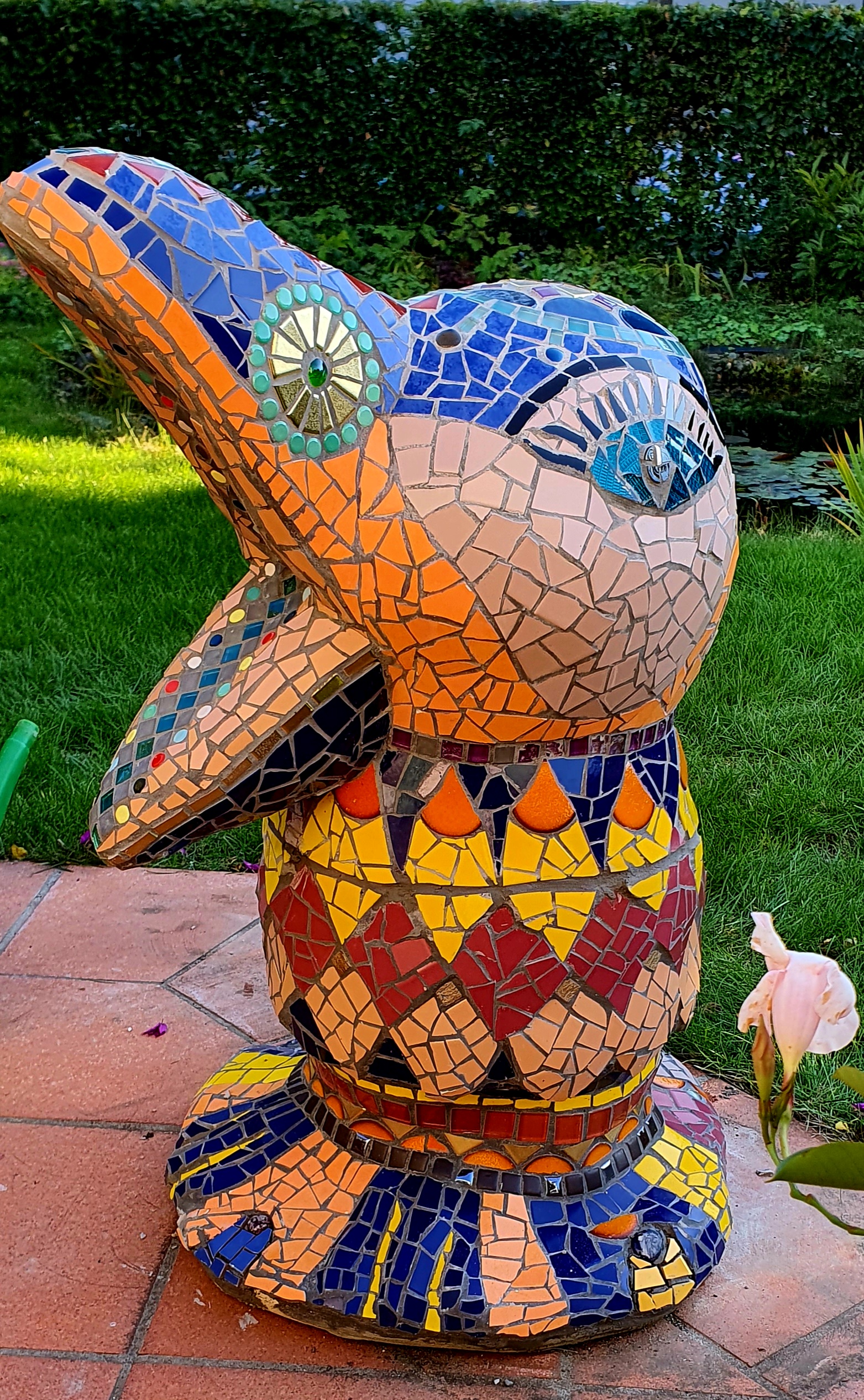 Mit Mosaikkunst wird ein Haus zum Schmuckstück – egal, ob durch Bilder, Schalen, Blumentöpfe, Kellerabgänge oder sogar auf den Küchenarbeitsplatten lässt es sich gut verlegen. Hier passt ein guter Spruch von mir, alles was man nicht verbergen kann, z.B. Mauervorsprünge, oder Risse und Spalten am Haus kann man mit Mosaik überarbeiten. Wohnungsdurchbrüche genauso, wie Bäder, wo man teilweise die alten Fliesen recyceln und als Mosaik gemischt mit anderen Farben wiederverwenden kann.
