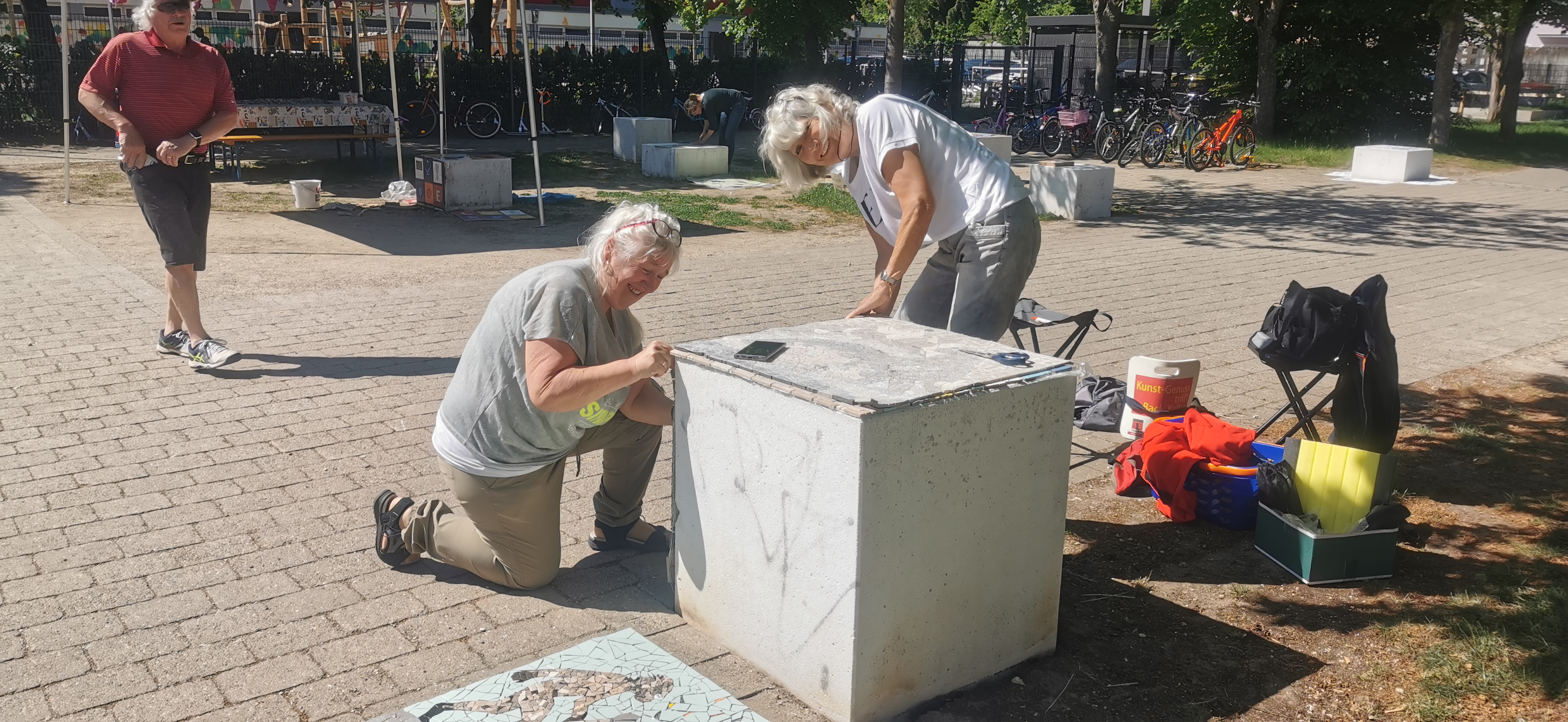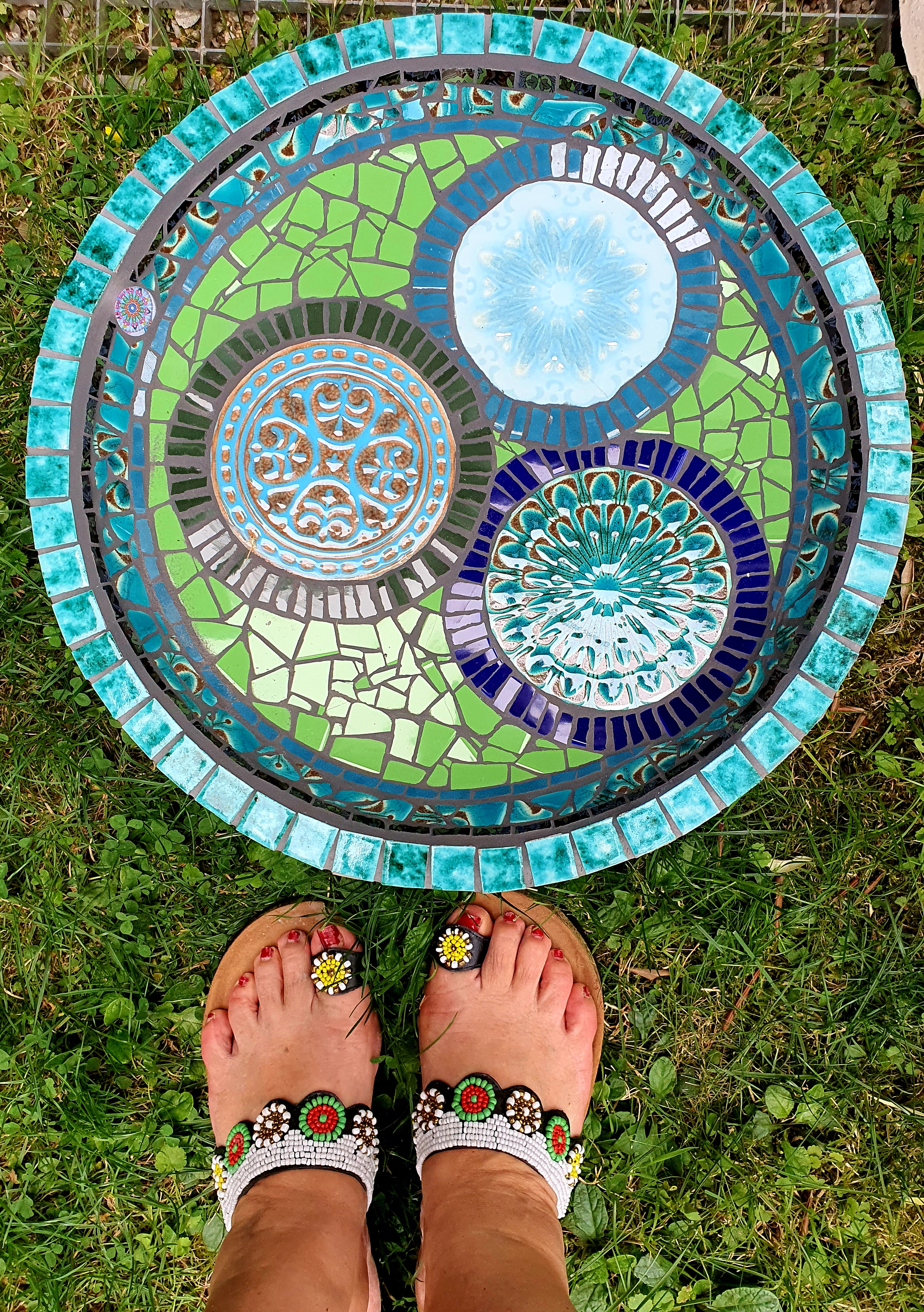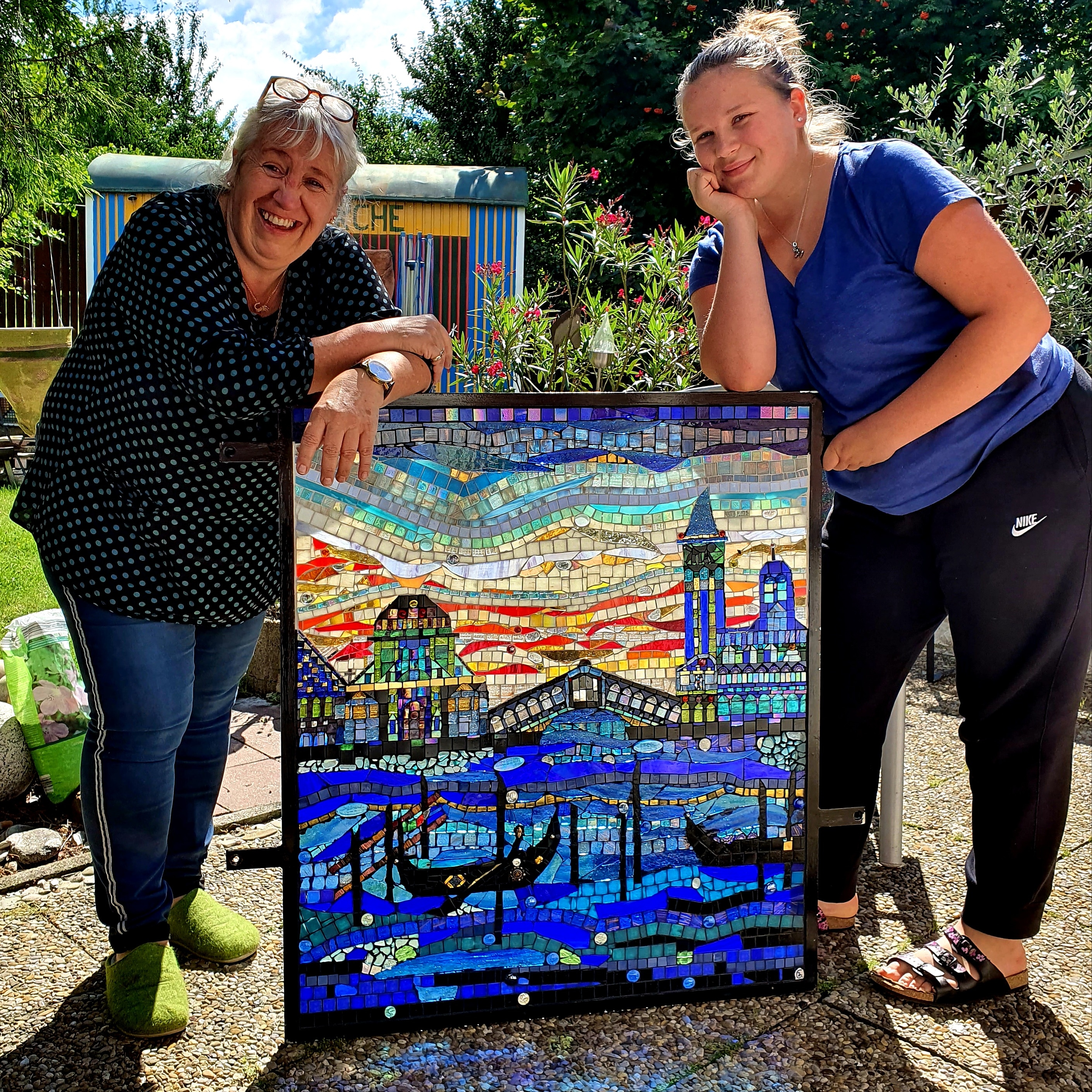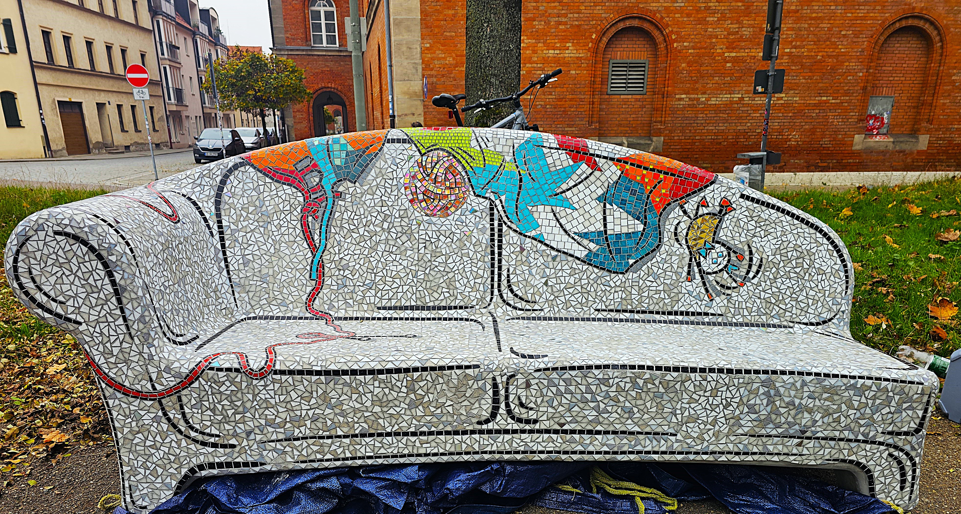 Mit Mosaikkunst wird ein Haus zum Schmuckstück – egal, ob durch Bilder, Schalen, Blumentöpfe, Kellerabgänge oder sogar auf den Küchenarbeitsplatten lässt es sich gut verlegen. Hier passt ein guter Spruch von mir, alles was man nicht verbergen kann, z.B. Mauervorsprünge, oder Risse und Spalten am Haus kann man mit Mosaik überarbeiten. Wohnungsdurchbrüche genauso, wie Bäder, wo man teilweise die alten Fliesen recyceln und als Mosaik gemischt mit anderen Farben wiederverwenden kann.